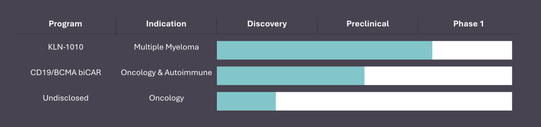 这些记过表明,KLN-1010 有望成为多发性骨髓瘤治疗的变革性进展,因为它避免了复杂、耗时且昂贵的体外 CAR-T 细胞的生产制造流程,且无需对患者进行预给药化疗。