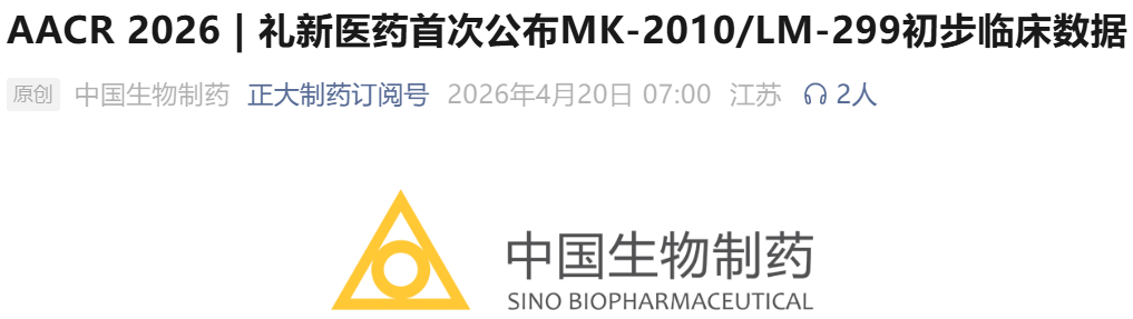 图1. 礼新医药公布MK-2010/LM-299初步临床数据,来源:正大制药订阅号