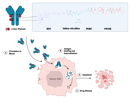 抗体药物偶联物(ADC)是一类创新生物药,通过化学连接子将具有高度靶向性的单克隆抗体与高活性细胞毒性小分子药物偶联而成。这种设计理念被誉为靶向肿瘤细胞的“生物导弹”,能够将毒性药物精准递送至表达特定抗原的肿瘤细胞内部,在提高疗效的同时,显著降低对正常组织的毒副作用。