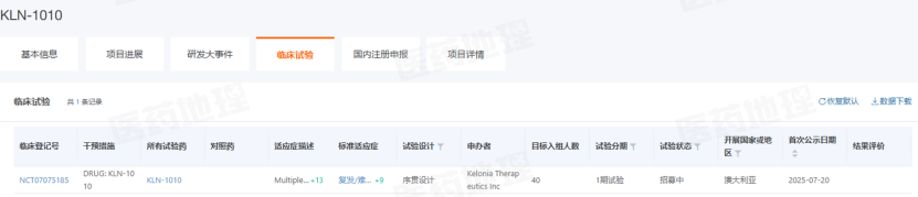 KLN-1010不仅省去了体外制备患者特异性细胞疗法的繁琐流程,也免去了给药前的清淋化疗,有望成为多发性骨髓瘤治疗领域的变革性突破。去年7月,Kelonia在澳大利亚启动了KLN-1010复发/难治性多发性骨髓瘤的I期临床试验。今年1月,FDA批准了KLN-1010的IND申请。