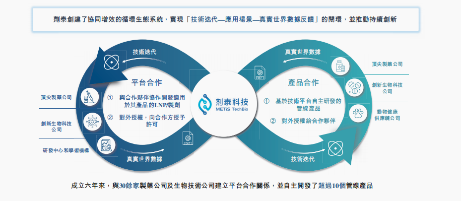 通过平台合作,从而产生基于项目的收入,包括选择权费用、研究费及为其开发的基于纳米材料的产品最终收取的许可费。成立六年间,剂泰科技已与30余家药企及生物技术公司建立了合作。这不仅带来了早期的现金流,更在实际应用中获取了大量真实世界数据,反哺AI平台的迭代。