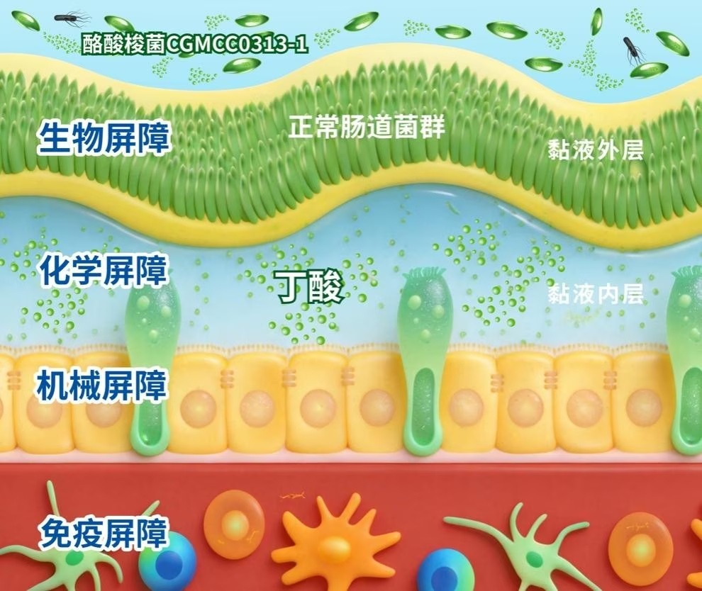 产生丁酸,修复肠道屏障: