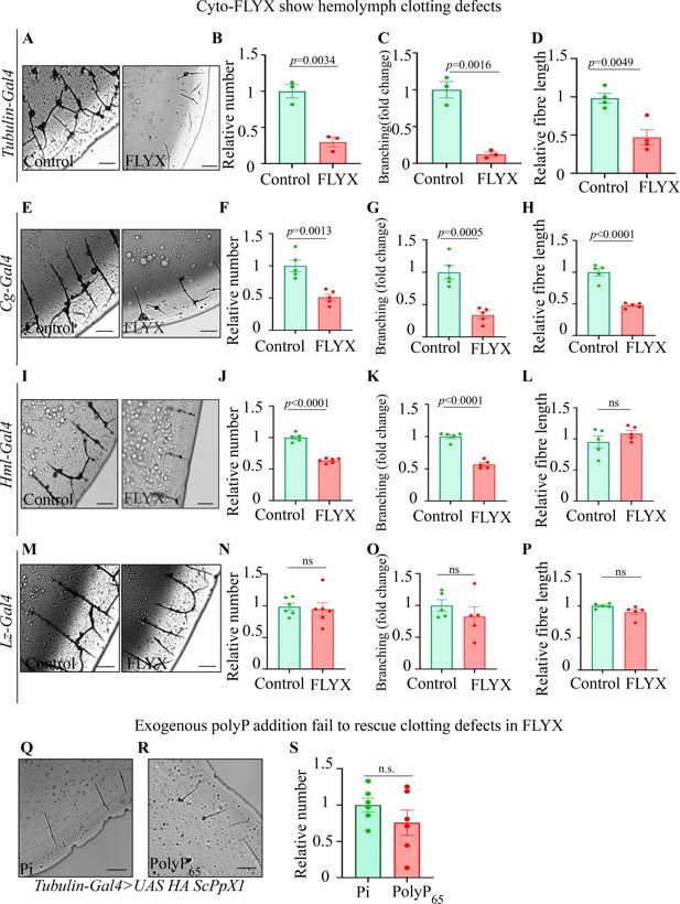 hemolymph clotting and proper developmental timing, consistent with an evolutionarily conserved role as exogenous polyP also accelerates mammalian blood clotting. Furthermore, the transcriptomics analysis of polyP-depleted larvae demonstrates the impact of polyP on several cellular processes, including translation. These observations underscore the utility of the toolkit we developed to discover previously unknown polyP functions in metazoans.