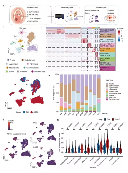 转录组分析揭示了OLK癌变过程中的细胞异质性及迁移体评分变化(摘自