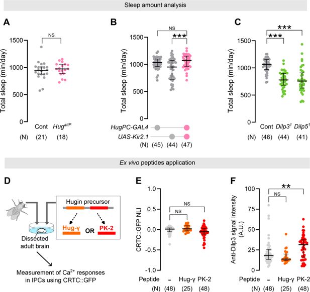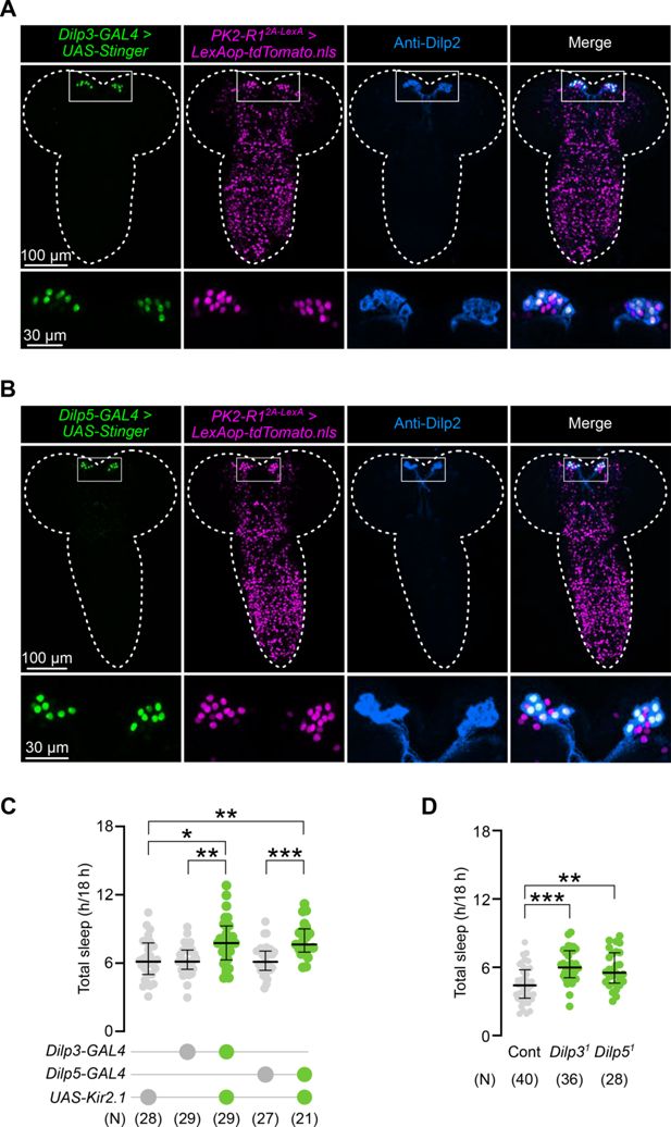 ). To assess whether IPCs are involved in larval sleep, we silenced IPCs with Kir2.1 expression, using the IPC-specific drivers