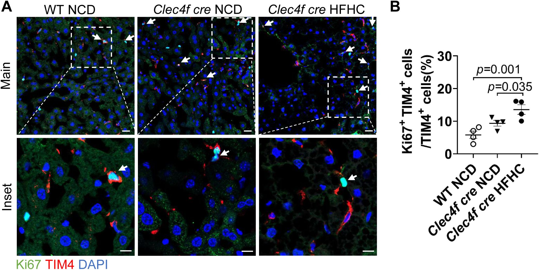 ). Considering the potential recruitment of MoMFs into the liver, some of which may acquire KCs features, including TIM4 and Clec4f expression