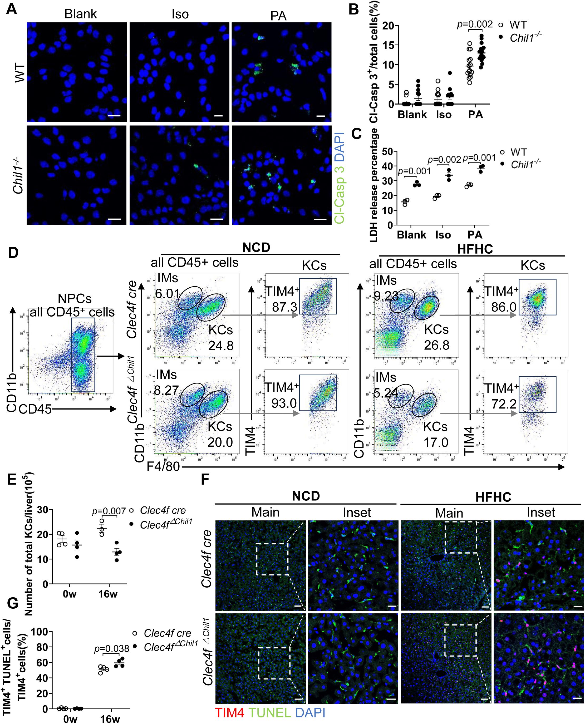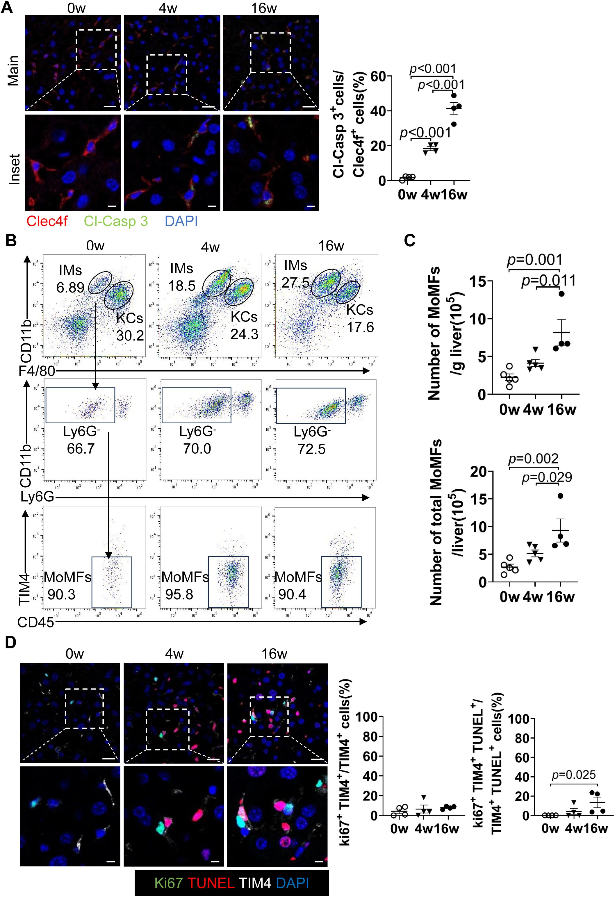 ). To further validate KCs death during MASLD progression, we performed co-staining of the apoptotic marker cleaved caspase-3 (Cl-Casp3) with C-type lectin domain family 4 (Clec4f), another marker specific for KCs