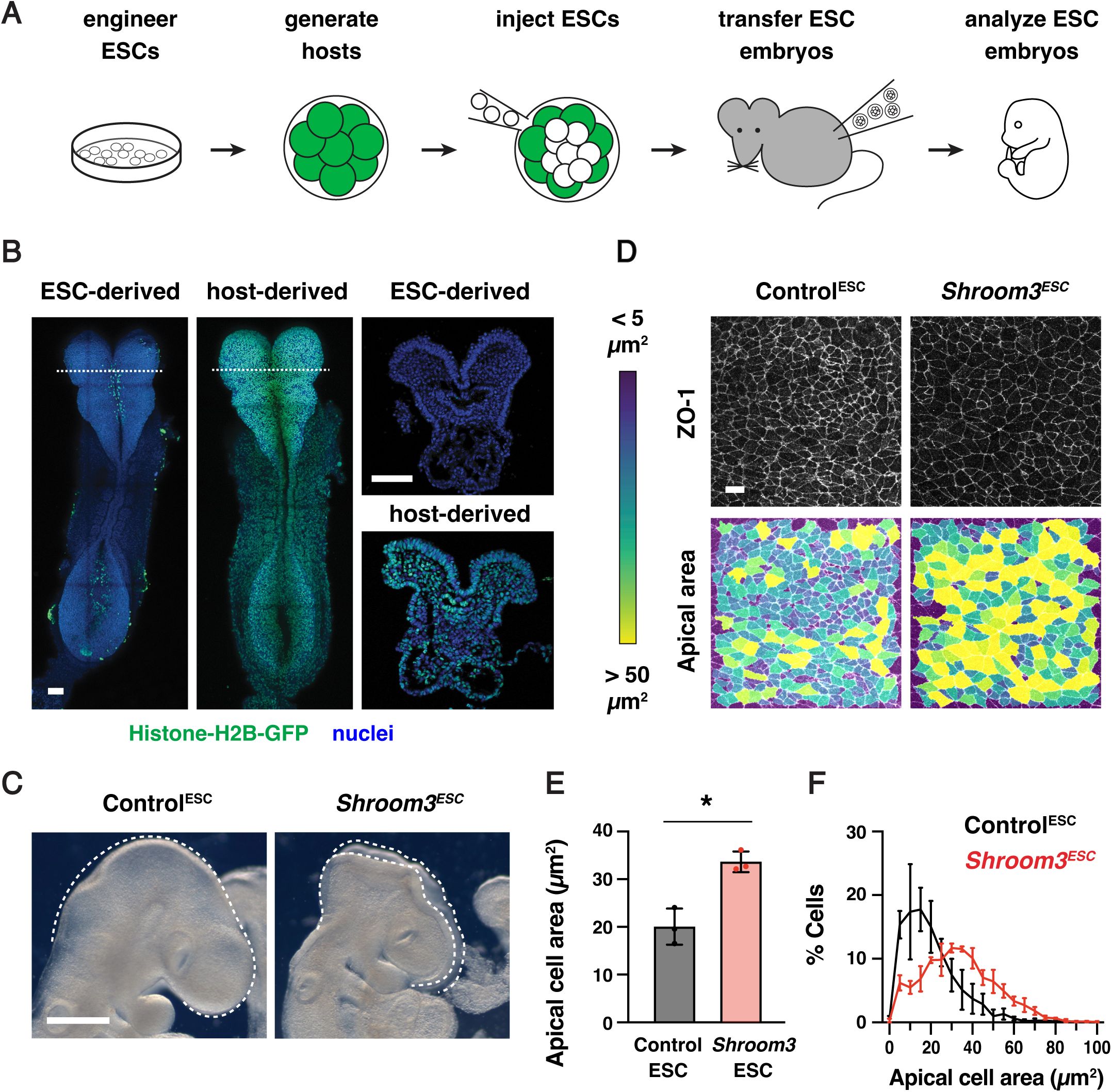 Here we used a high-throughput embryonic stem cell-based method to efficiently generate large numbers of mutant embryos in order to analyze the role of Vinculin during mouse cranial neural tube closure. Using biophysical and live imaging approaches, we show that mechanical forces in the developing midbrain are anisotropic and increase as neural tube closure proceeds. Mechanical forces are generated correctly in