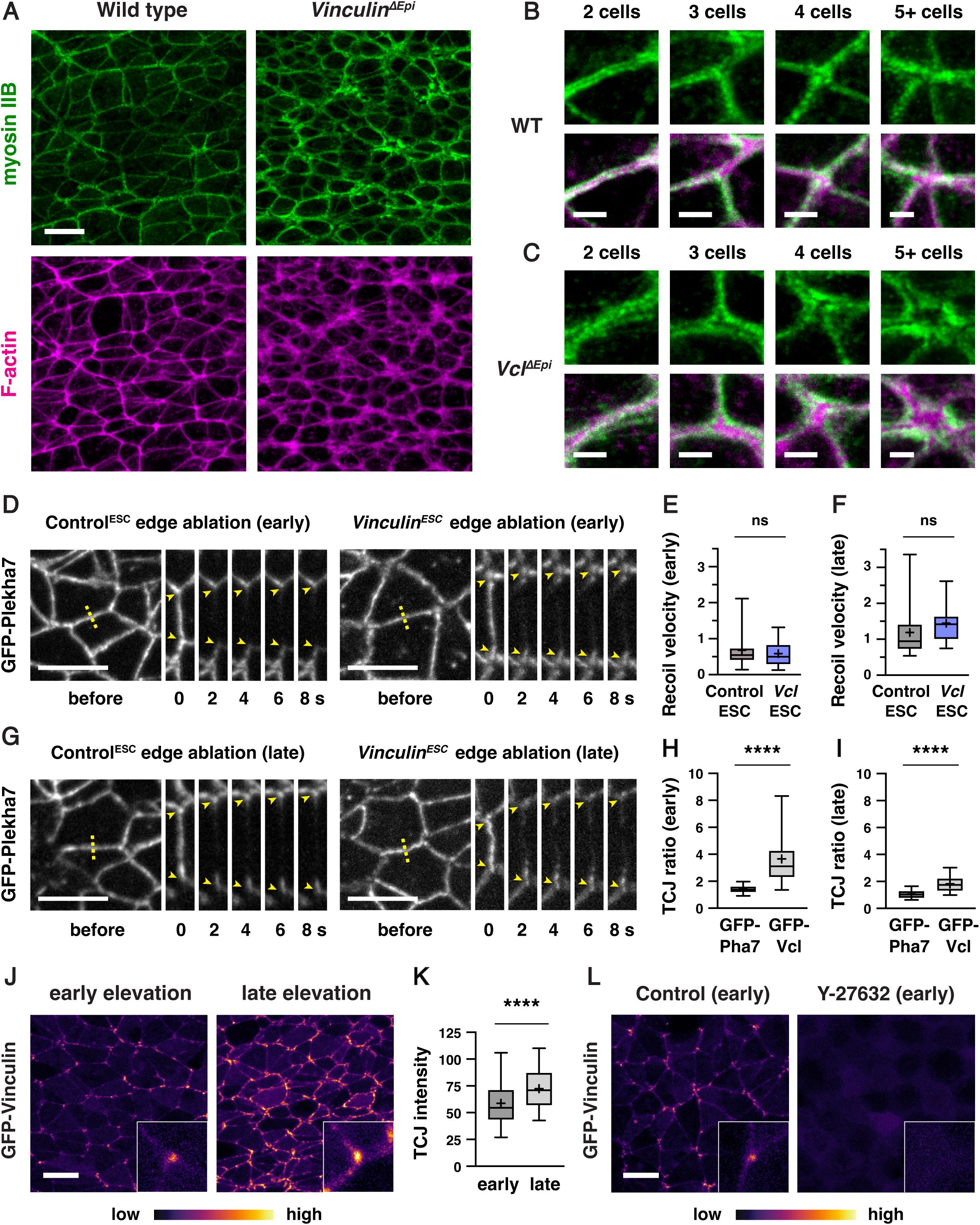). In addition to linking junctions to actin, Vinculin also regulates myosin II activity and actin organization at adherens junctions through interactions with actin regulatory proteins (