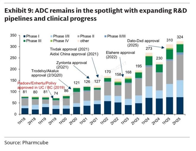 研发与临床端转化快:全球ADC药物研发管线数量持续攀升,临床各阶段项目推进节奏十分快速,直接推动CDMO订单需求快速增长;
