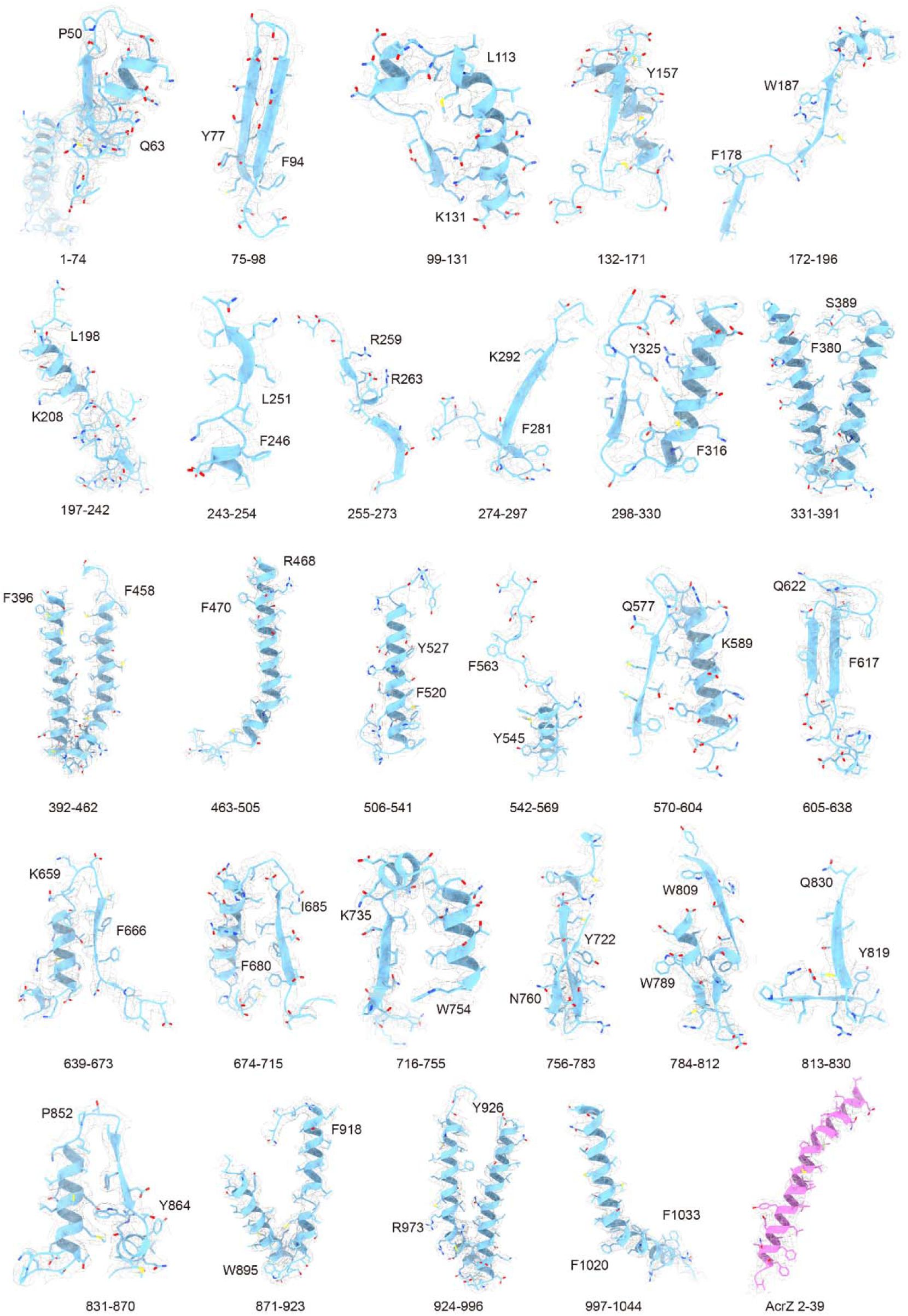, the limited resolution and conformational heterogeneity in those structures impeded accurate modeling of flexible regions and may have masked the presence of additional subunits.