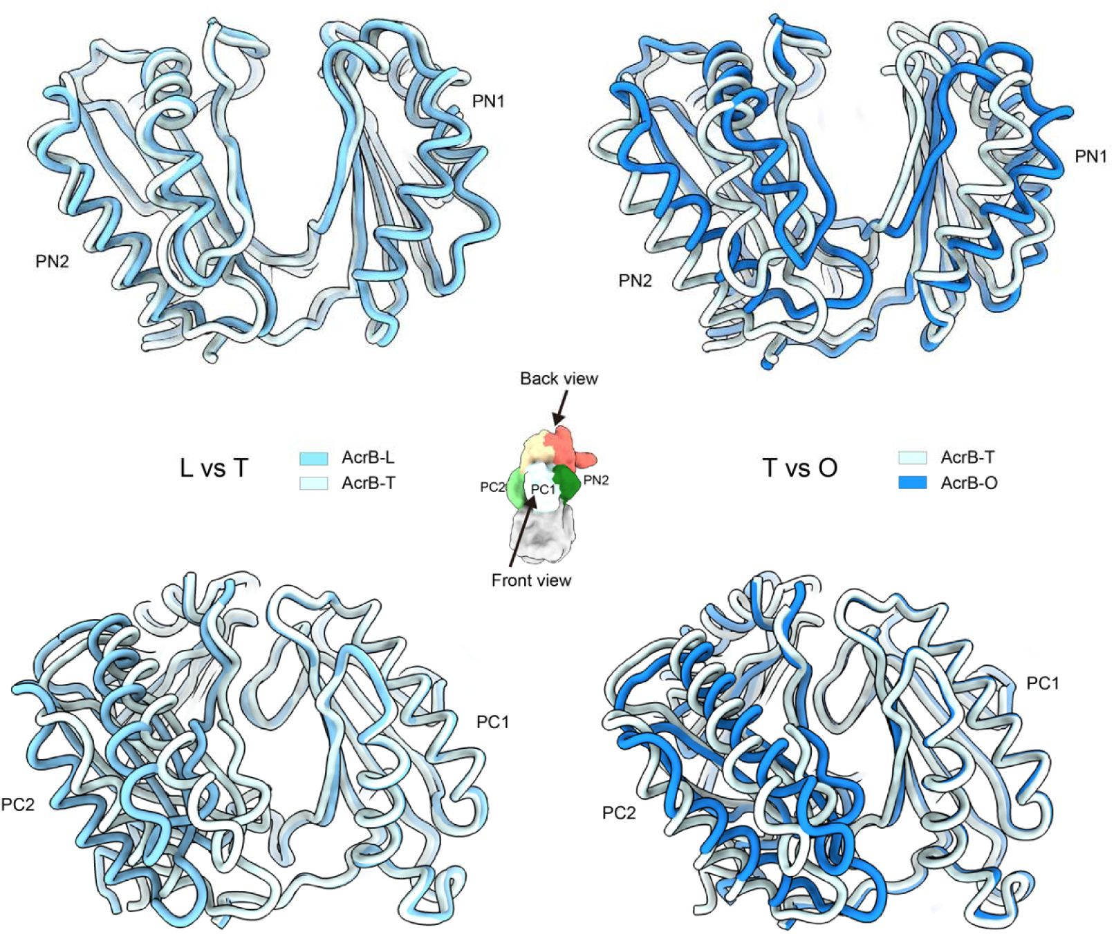 Here, we address these knowledge gaps by determining two high-resolution cryo-EM structures of the TolC-based efflux machinery in