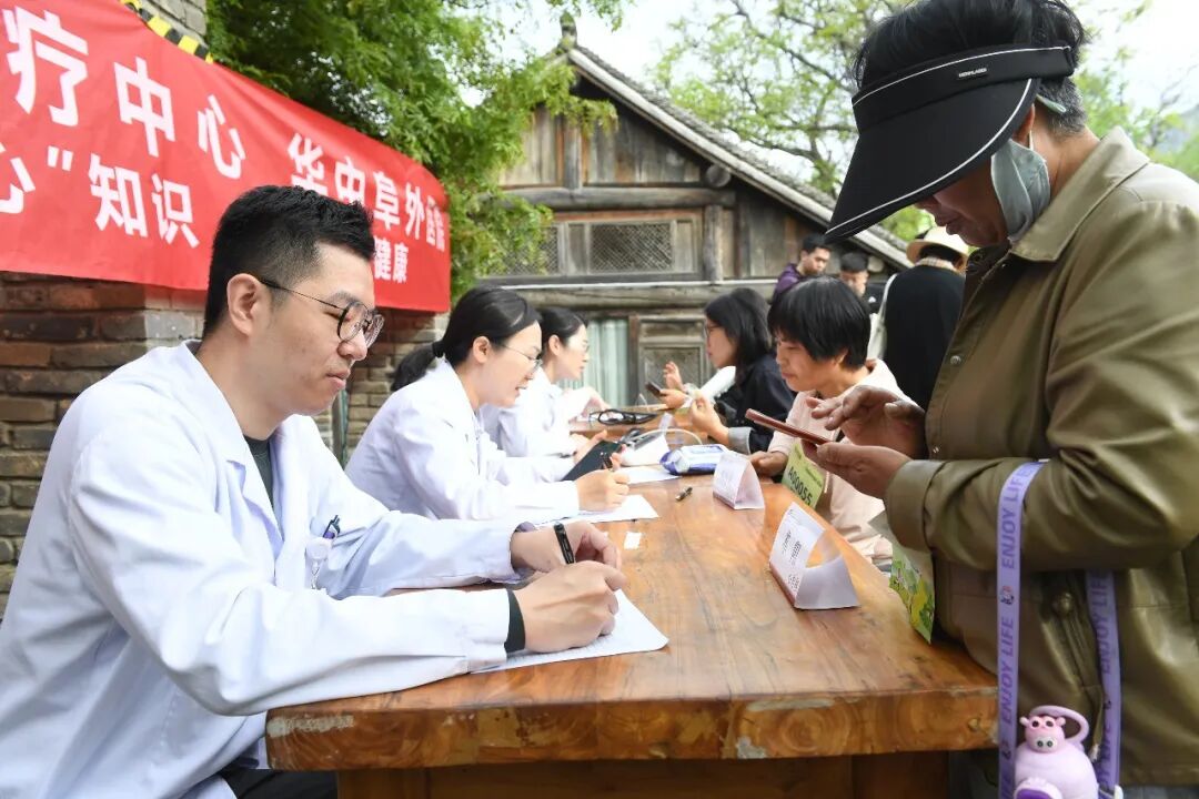 作为中国美丽休闲乡村,玄天庙村的青山绿水间,徒步爱好者的活力与医护人员的温情交相辉映,而主会场旁的公益义诊区,更成为这场活动中最暖人心的风景—— 阜外华中心血管病医院多学科专家, 用专业与耐心, 将优质医疗服务送到了活动参与者的心坎上。 本次义诊,也是医院深入开展 “三进”活动 的重要组成部分。