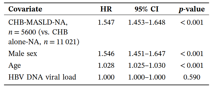 核苷治疗的患者,合并MASLD的疾病进展与远期风险显著更高