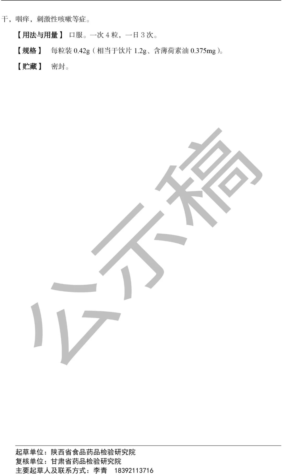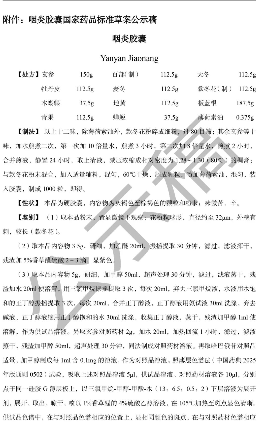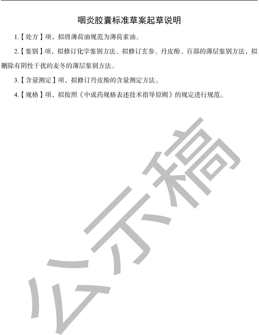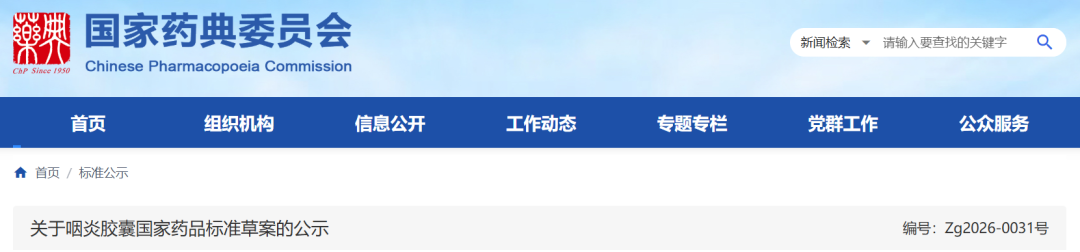我委拟修订咽炎胶囊国家药品标准,标准编号:YBZ31142005-2009Z。为确保标准的科学性、合理性和适用性,现将拟修订的咽炎胶囊国家药品标准公示征求社会各界意见(详见附件)。公示期自发布之日起三个月。请认真研核,若有异议,请及时在线反馈,并附相关说明、实验数据和联系方式。来函需打印后加盖公章,个人来函需打印后本人签名,并邮寄至我委通讯地址。