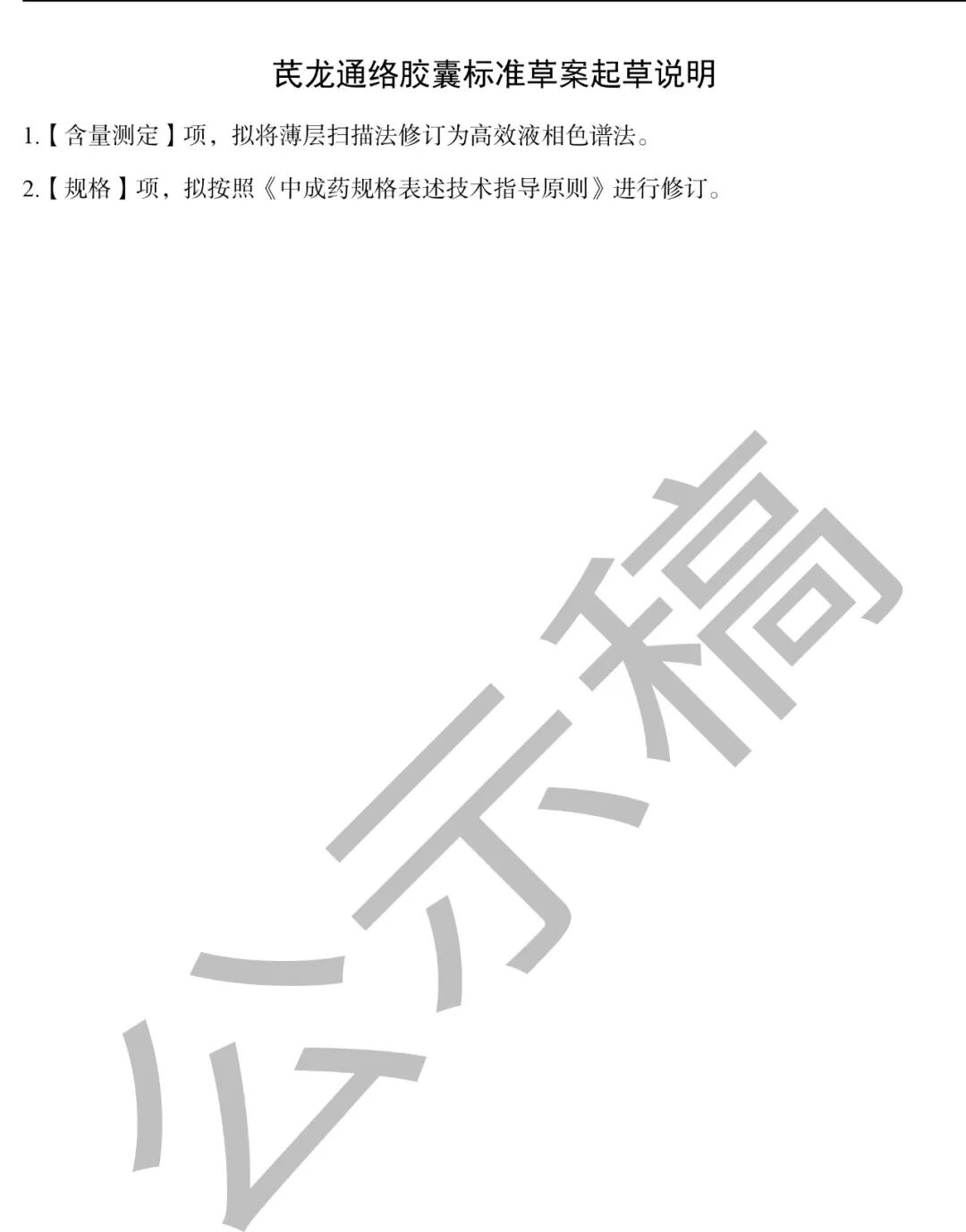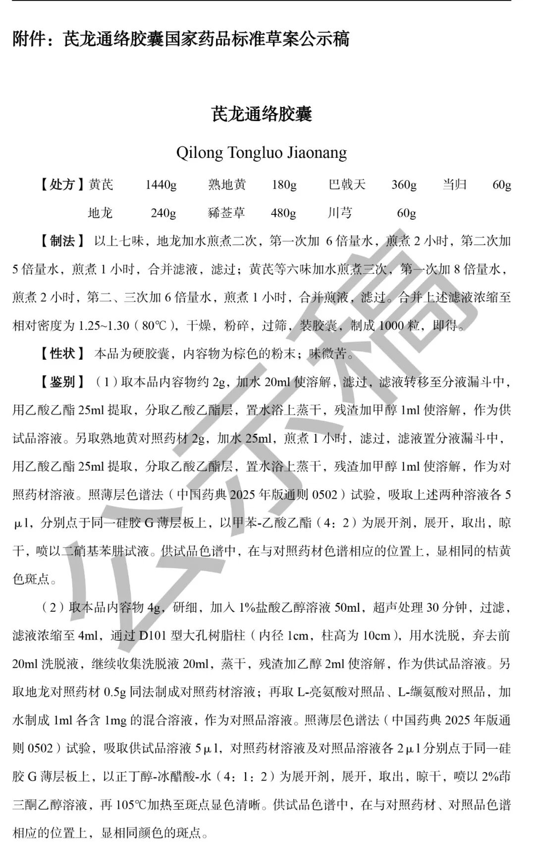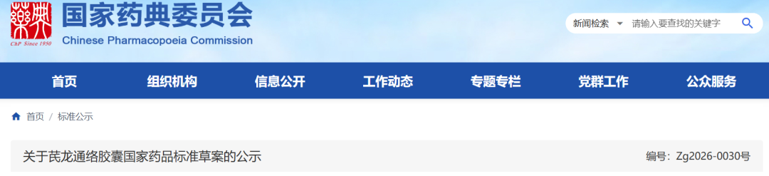 我委拟修订芪龙通络胶囊国家药品标准,标准编号:WS-5727(B-0727)-2014Z。为确保标准的科学性、合理性和适用性,现将拟修订的芪龙通络胶囊国家药品标准公示征求社会各界意见(详见附件)。公示期自发布之日起三个月。请认真研核,若有异议,请及时在线反馈,并附相关说明、实验数据和联系方式。来函需打印后加盖公章,个人来函需打印后本人签名,并邮寄至我委通讯地址。