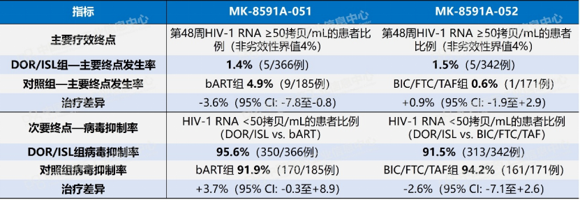 默沙东随即展开了“剂量优化”攻坚战,将Islatravir每日剂量从0.75 mg大幅下调至0.25 mg,并启动新的III期临床试验。在一项剂量范围的研究中,0.25 mg每日一次的给药方案对总淋巴细胞和CD4+T细胞计数的影响与标准抗逆转录病毒疗法相当。两项III期试验在第48周的结果给出了强有力的答案:在MK-8591A-052试验中,Idvynso组仅1%病毒载量反弹至≥50拷贝/mL,与Biktarvy组完全持平。截至去年年底,0.25 mg剂量已在多项研究中被确认为最低有效剂量且不影响淋巴细胞水平。这一“减量不减效”的剂量优化策略,使Islatravir从“濒死分子”重新被推上审批跑道。