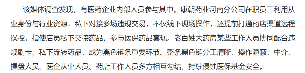 串换,就是把化妆品、保健品,在医保系统里登记成药品。湖南娄底6家老百姓大药房门店,将保健品串换成医保药品结算,被责令退回基金并被解除医保协议。云南一心堂多家门店串换药品、超量开药、购销存记录不匹配,被医保部门当场查处。