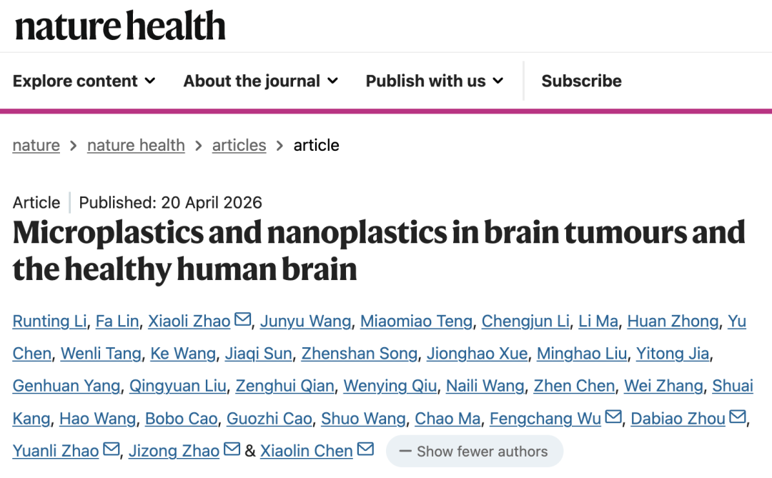 Nature Health:我国学者首次证实,活人大脑中普遍存在微纳塑料,且与肿瘤增殖相关