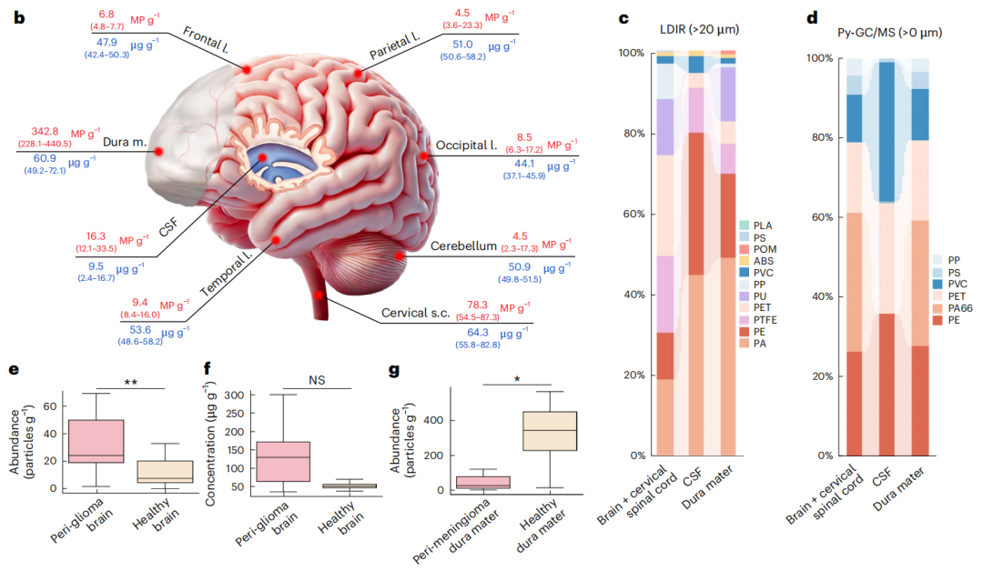 健康大脑中微塑料/纳米塑料的分布图谱