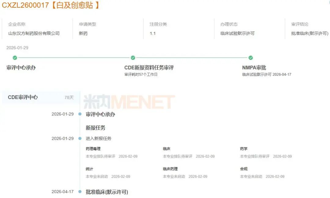 近日,中成药贴膏剂1类新药再传捷报。4月17日,山东汉方制药的白及创愈贴获批临床,适应症为开放性不需缝合的切割伤。在此之前,中国中医科学院中药研究所的麻桂退热贴获批临床,适应症为儿童急性上呼吸道感染。