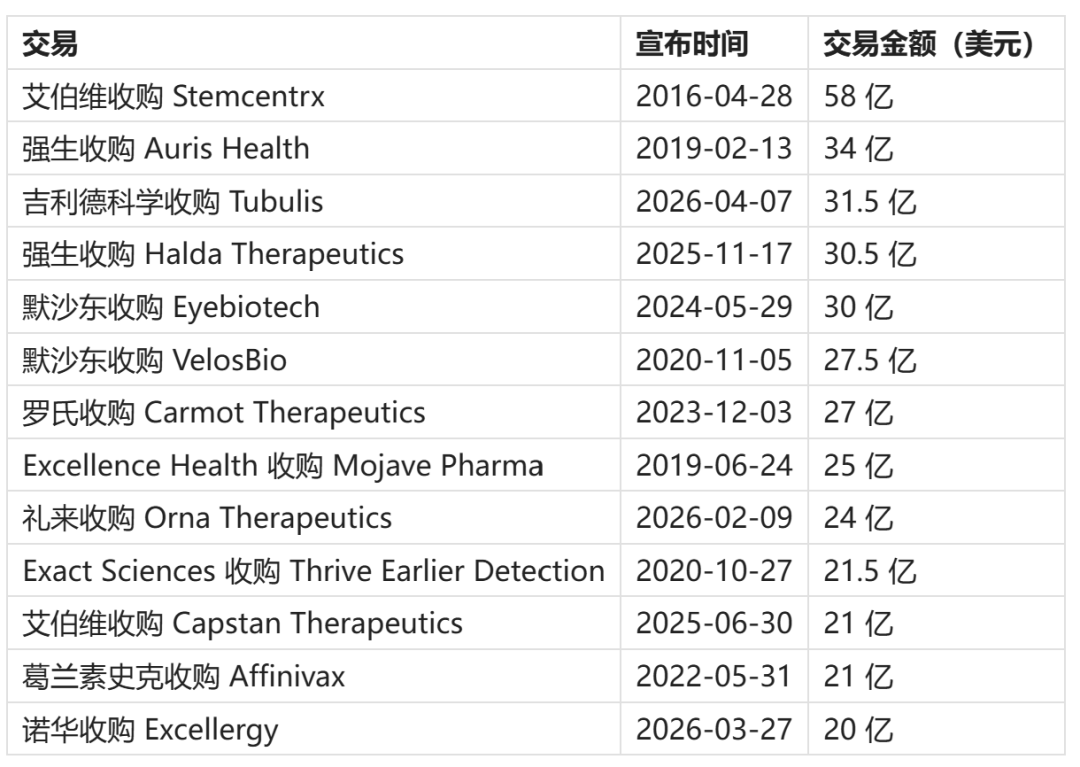 这一榜单并未纳入那些曾获风投注资、后又完成上市的生物科技公司,否则相关交易数量还会更多。这其中包括一些 IPO 后不久即被收购的公司,例如专注肥胖和代谢疾病疗法开发的 Metsera,该公司于 2025 年 2 月上市,并在当年晚些时候以约 100 亿美元的交易价值出售给辉瑞。