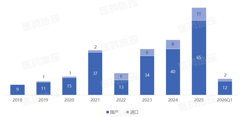 2018-2026Q1国内获批的1类创新药数量