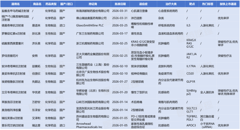 2026Q1国内获批的1类创新药一览