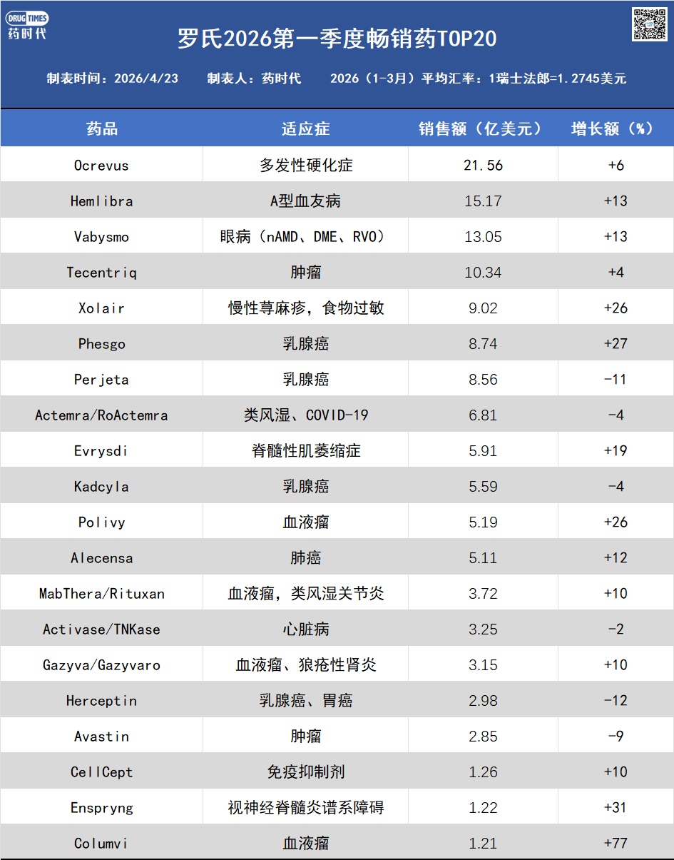 虽然受专利悬崖影响,Avastin、Herceptin、MabThera/Rituxan、Lucentis及Actemra/RoActemra等产品的销售额合计按恒定汇率计算下降1亿瑞士法郎,按瑞士法郎计算下降2亿瑞士法郎。