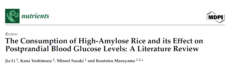 2.Li J, Yoshimura K, Sasaki M, Maruyama K. The Consumption of High-Amylose Rice and its Effect on Postprandial Blood Glucose Levels: A Literature Review. Nutrients. 2024; 16(23):4013.