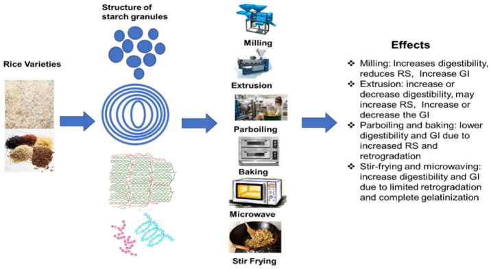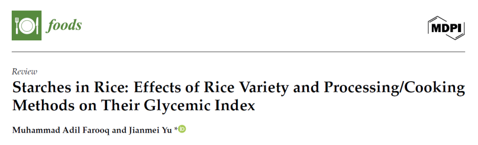 1.Farooq MA, Yu J. Starches in Rice: Effects of Rice Variety and Processing/Cooking Methods on Their Glycemic Index. Foods. 2025; 14(12):2022.
