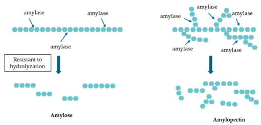 图:直链淀粉和支链淀粉的水解