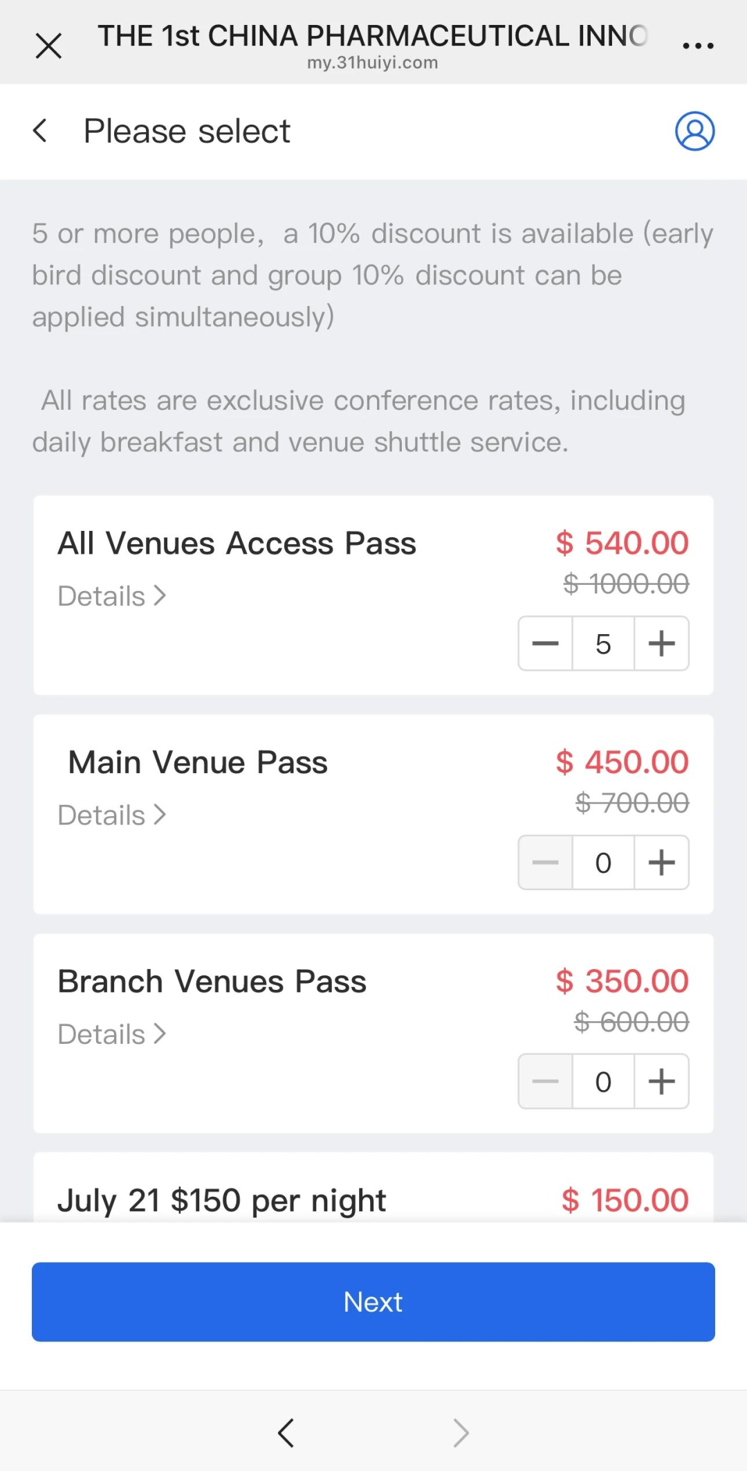 Registration Steps: Enter 5 or more participants to get an additional 10% discount on early bird prices → Fill in information of each attendee → Make payment → Complete registration.