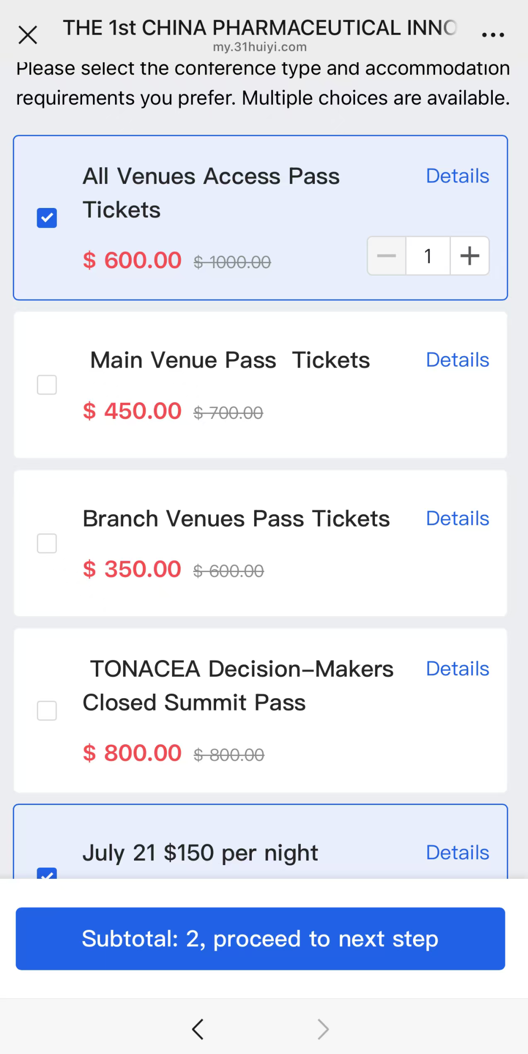 Registration Steps: Select detailed ticket type according to your enterprise category → Choose additional conferences, events or accommodation as needed → Fill in personal details → Make payment → Complete registration.