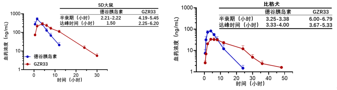 图:GZR33与德谷胰岛素的药代动力学性质对比
