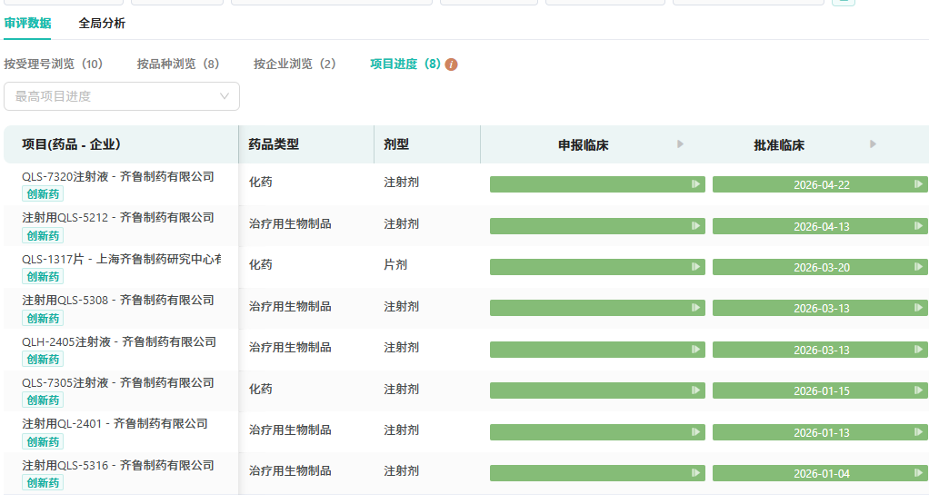 齐鲁制药创新管线爆发,8款1类新药首次获批临床!