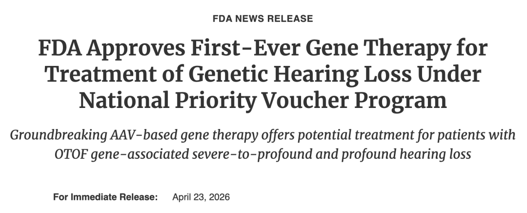 FDA批准全球首款耳聋基因疗法上市,再生元公司宣布将免费提供