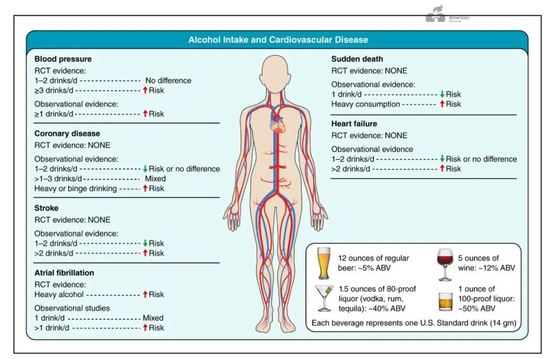 当然,作者也谨慎提示,实际的饮酒行为模式(如是否规律、是否伴随暴饮)以及酒类品种的差异,可能对结论的外部适用性产生一定影响。总体而言,该研究为基层医疗中的健康咨询与心血管一级预防策略提供了更为精细、基于长期本土证据的参考框架。它提醒公众与临床医生,在评估血管健康风险时,应将干预重心更多聚焦于血压、血脂、吸烟及代谢指标等明确危险因素上,而非过度放大低剂量饮酒的独立影响。科学把控饮酒量,守护中年健康,完整饮酒建议可在 DeepEvidence 小程序查看。