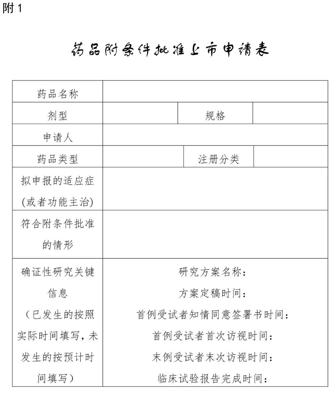 附:1.药品附条件批准上市申请表