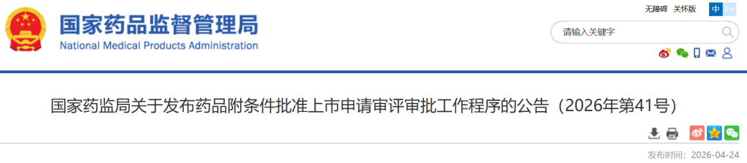 国家药监局关于发布药品附条件批准上市申请审评审批工作程序的公告