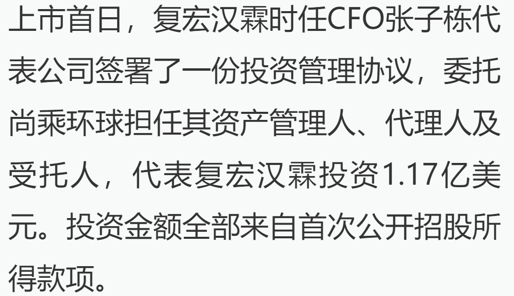 第三幕:复宏汉霖——上市首日,募资款先去资管公司转了一圈