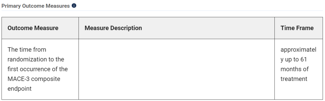 该三期临床主要终点为MACE-3复合终点首次发生时间,随访时间为五年。