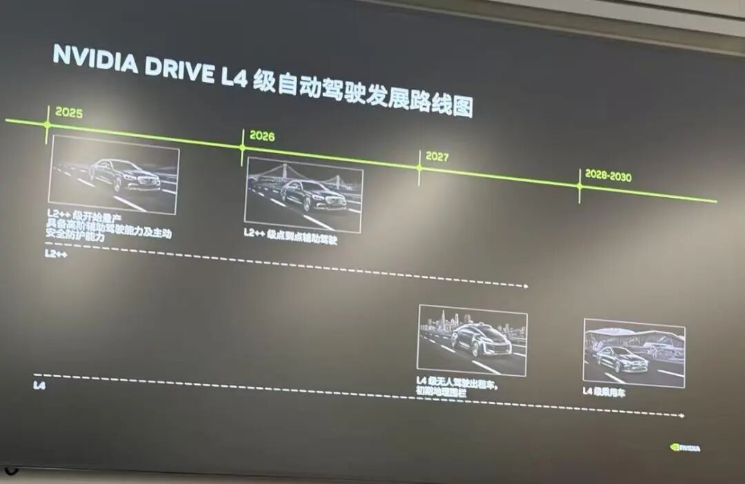 吴新宙还向在场的媒体公布了英伟达L4级自动驾驶发展路线图:2025年完成与奔驰合作的首次量产交付;2026年在美国推进L2++的规模化落地;2027年与谷歌合作在部分城市开始L4试点;2028年携手Uber在洛杉矶奥运会期间提供无人驾驶服务,并计划覆盖20到30个城市。