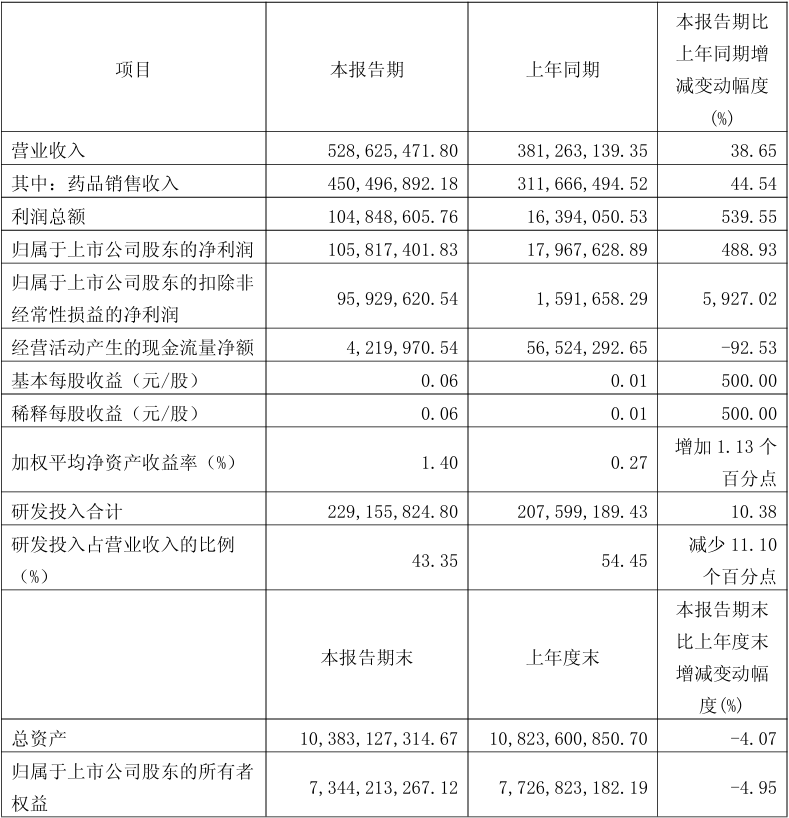 2026年第一季度,诺诚健华业绩表现亮眼。营业收入5.29亿元,同比增长38.65%;药品销售收入4.50亿元,同比增长44.54%,成为收入增长的核心驱动力。归属于上市公司股东的归母净利润达1.06 亿元,同比增长488.93%;扣非归母净利润0.96亿元(9592.96万元),同比增长5927.02%(近60 倍);全公司净利润1.02亿元,同比增长 607.72%,展现出主营业务盈利能力的实质性改善。