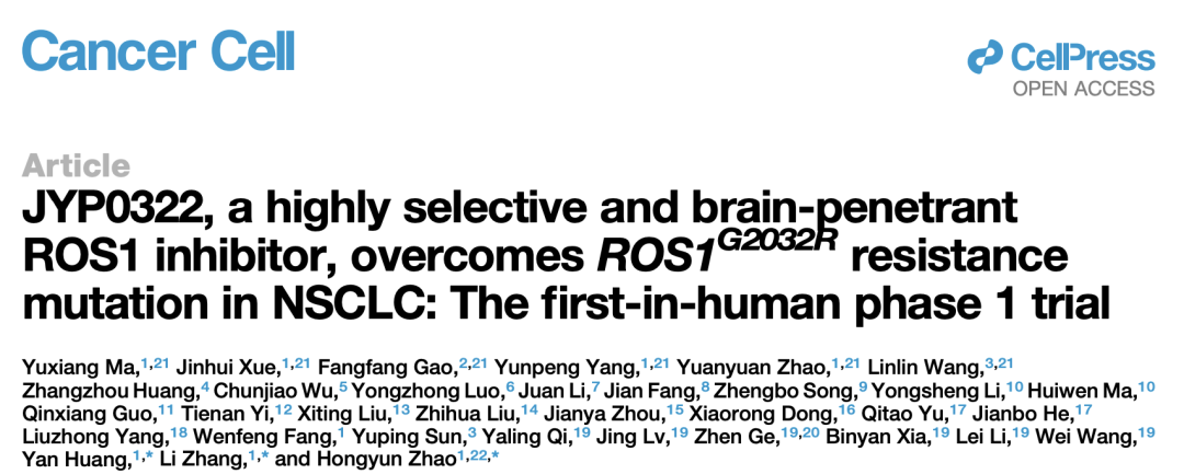 该研究报告了国产原研药物 JYP0322 的临床前评估以及首次人体 I 期临床试验结果。JYP0322 是一种新一代、高选择性且能穿越血脑屏障的 ROS1 抑制剂,旨在克服非小细胞肺癌中的 ROS1G2032R 耐药突变。