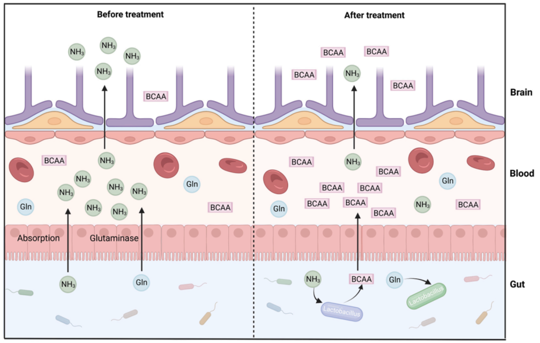肝性脑病(Hepatic Encephalopathy,HE)是肝硬化患者常见的严重并发症,患者血液和大脑中氨水平异常升高,进而导致认知障碍、焦虑甚至昏迷。目前临床主要使用乳果糖和利福昔明治疗,但效果有限且副作用明显。因此,临床上急需更精准、更安全的疗法。