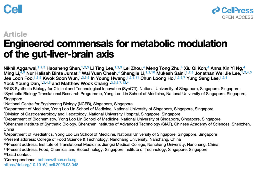 2025 年 2 月 5 日,沈浩晟博士作为第一作者,在 Cell 期刊发表了题为:Engineered commensals for targeted nose-to-brain drug delivery 的研究论文【2】。