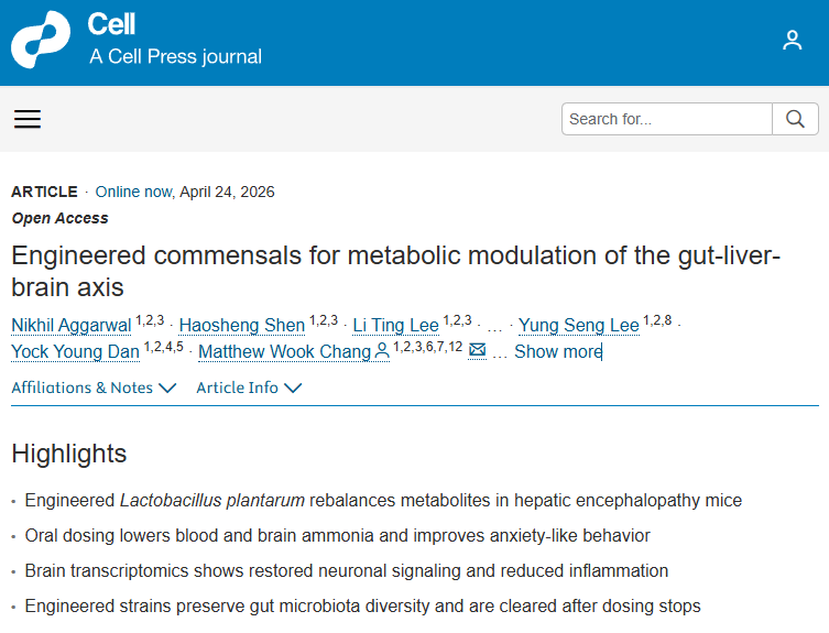 Cell重磅研究!工程益生菌重塑肠-肝-脑轴,开启肝性脑病精准治疗新篇章