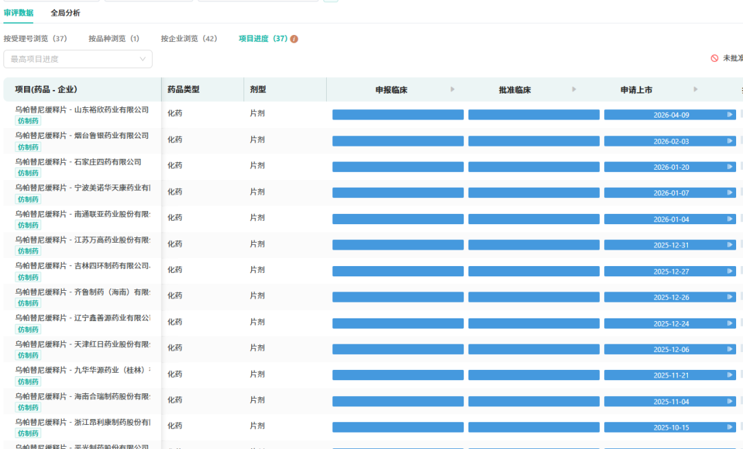 在仿制药布局方面,乌帕替尼已成为国内企业竞争的热点品种。据不完全统计,目前国内已有超过40家企业以仿制4类提交了乌帕替尼缓释片的上市申请,包括重庆华邦制药、石药集团、福元医药、华润三九、九华华源药业等多家知名药企,赛道拥挤,“抢仿”竞争已趋白热化。