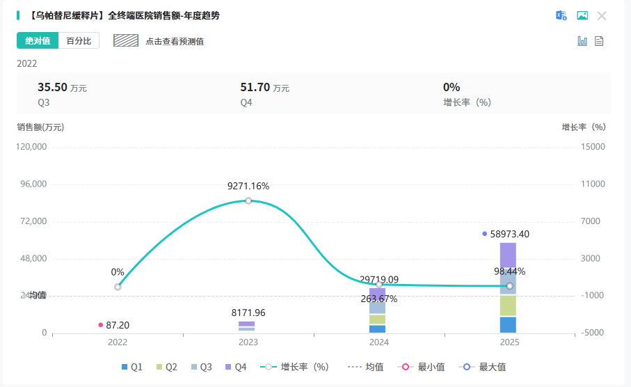 凭借其多适应症布局和口服便捷的优势,乌帕替尼已成为全球自身免疫疾病领域的“重磅炸弹”级药物。2024年,其全球销售额已逼近60亿美元,同比大幅增长50.44%,展现出强大的市场潜力。